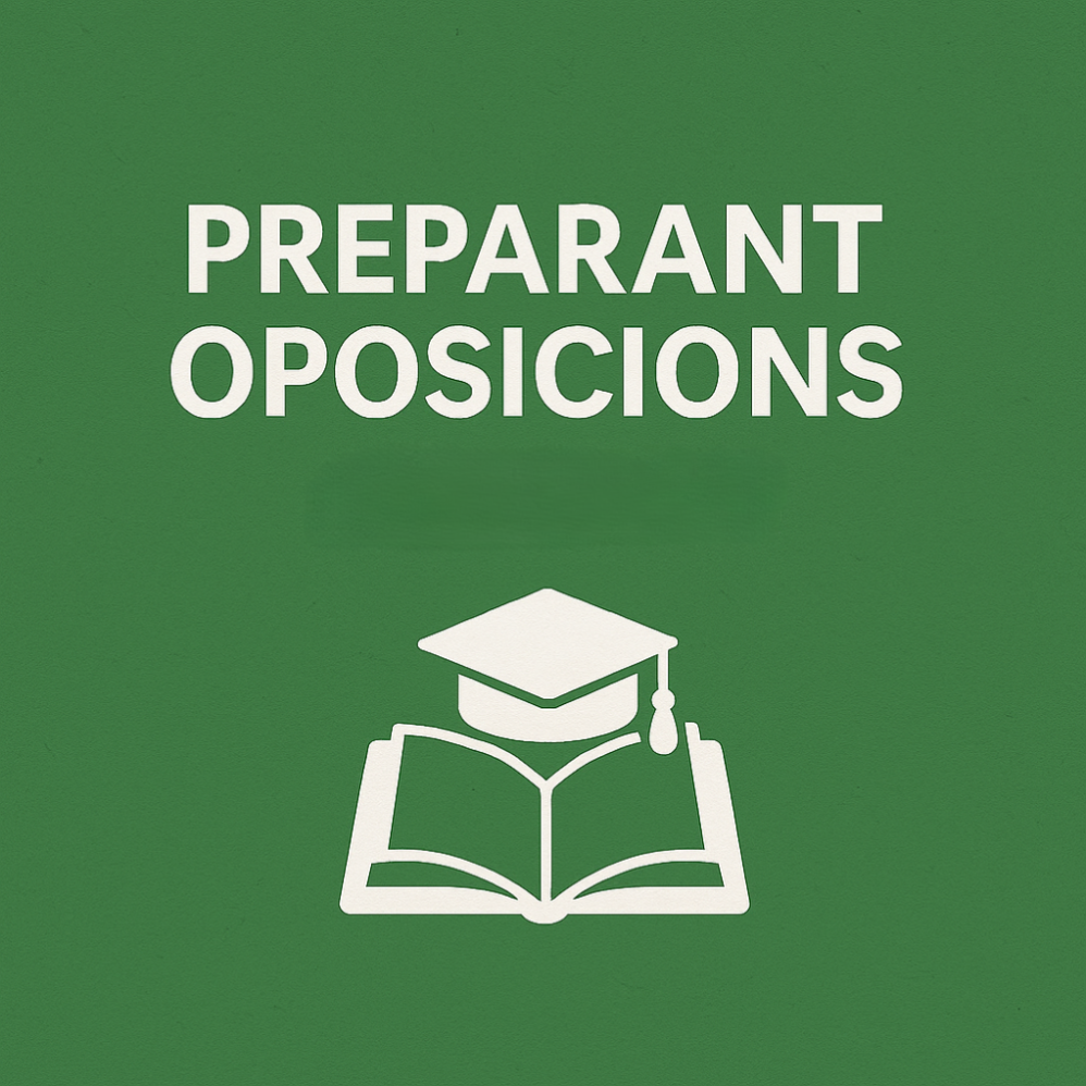 Imatge promocional per a opositores i opositors, amb un fons verd i una icona d’un llibre obert amb birret. Inclou el text “Preparant oposicions #PasionConTinta 2026” i transmet motivació, constància i acompanyament en el procés d’estudi.