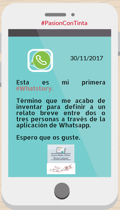 Whatstory es un término inventado por Rosa López #PasionConTinta para definir un relato breve entre dos o más personas a través de la aplicación de Whats App.