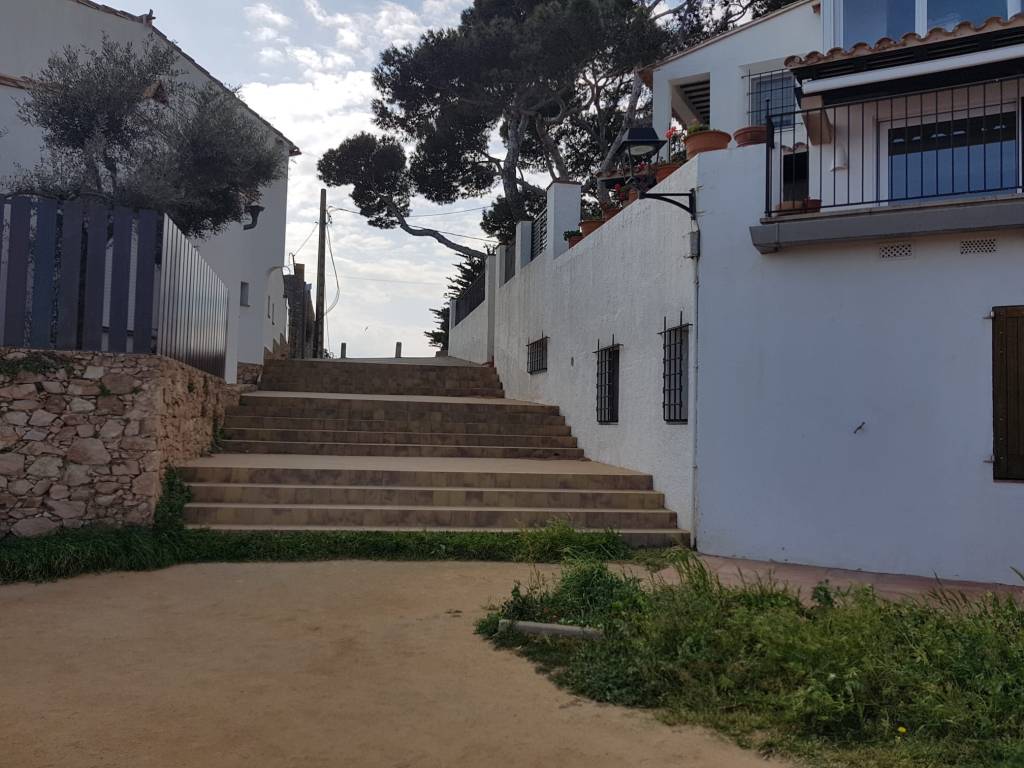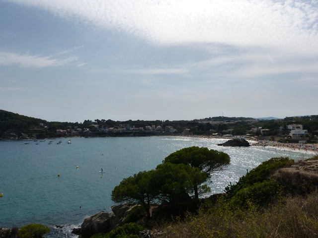Vista de la muralla medieval de Tossa de Mar amb la platja i el poble al fons