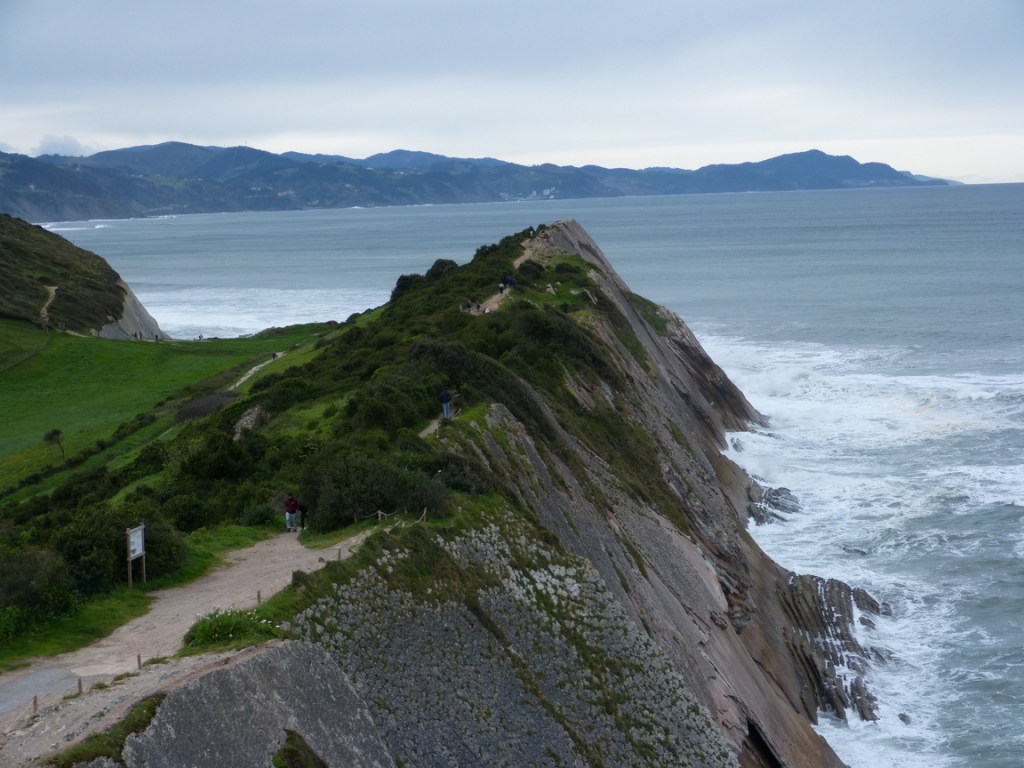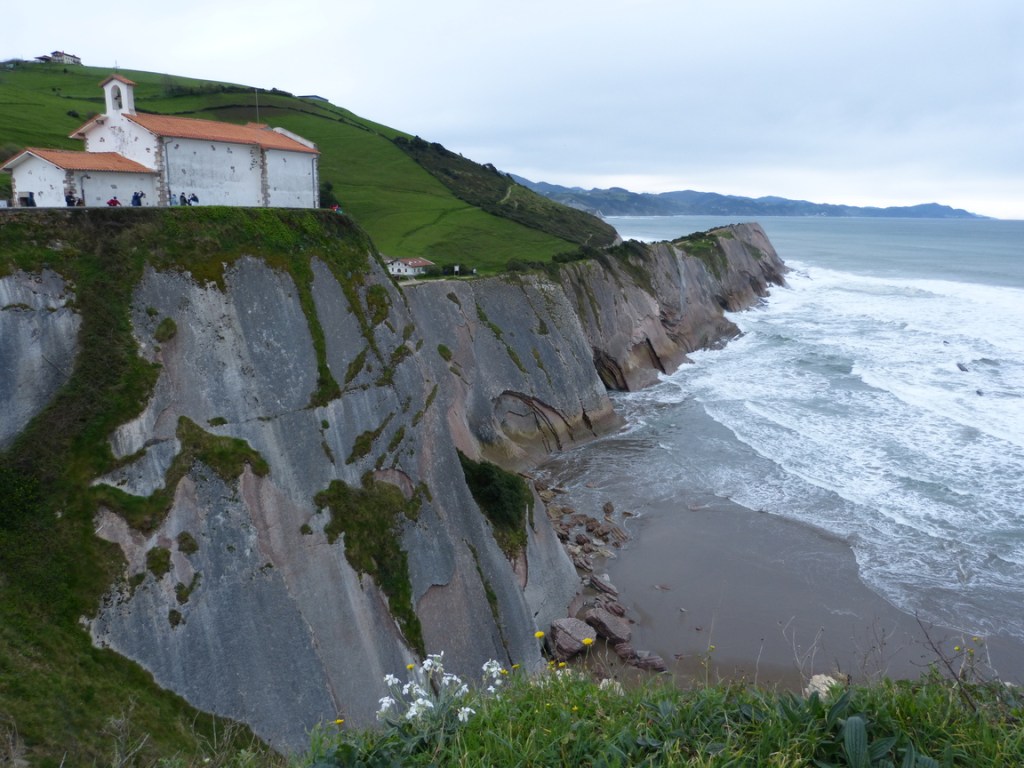 Camí empedrat entre roques que condueix a una torre medieval amb bandera, prop del mar