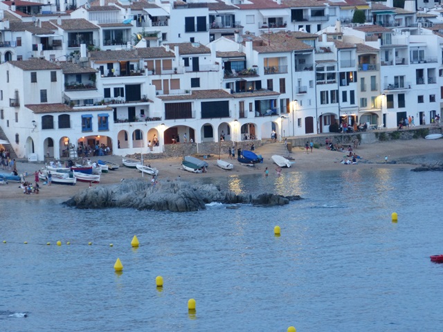 Imatge capturada des d’un punt elevat a Calella, Catalunya, mostrant barques sobre la sorra, edificis amb balcons i boies grogues a l’aigua. Utilitzada des de Rubí per projectes visuals sobre paisatge costaner i vida mediterrània.